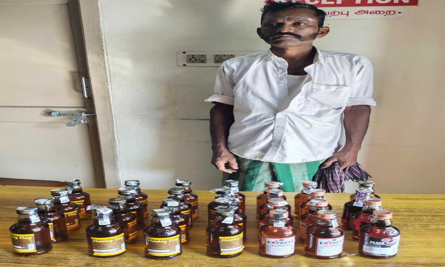கன்னியாகுமரியில் மது பாட்டில்களை பதுக்கி வைத்து விற்பனை செய்த தொழிலாளி கைது