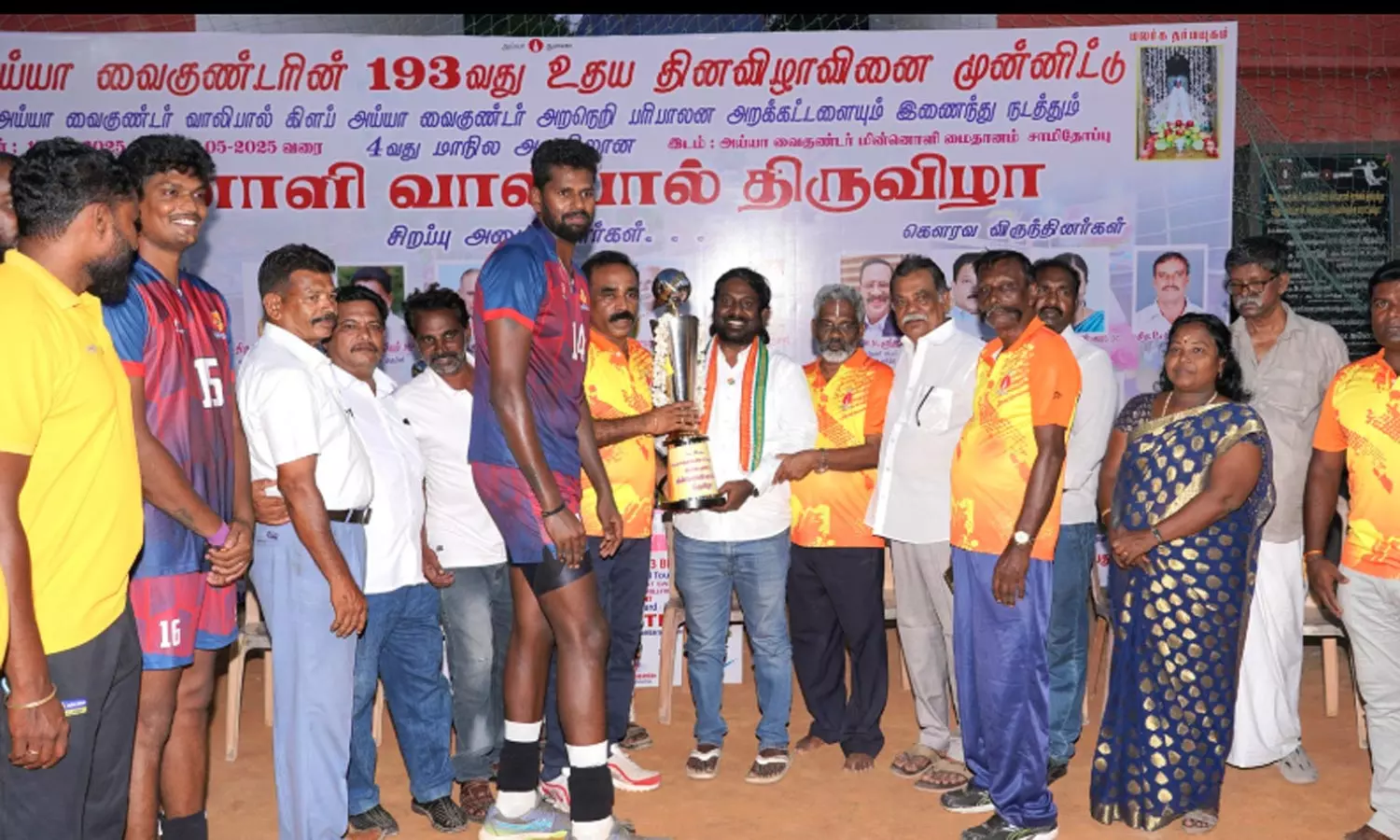 கன்னியாகுமரி மாவட்டம், சாமிதோப்பு தலைமைப்பதி வளாகத்தில் அய்யா வைகுண்டரின் 193-வது உதய தினவிழாவினை முன்னிட்டு நேற்று அய்யா வைகுண்டர் கிளப் நிறுவனர் மற்றும் தலைவர் குரு. பால ஜனாதிபதி தலைமையில் அய்யா வைகுண்டர் வாலிபால் கிளப் மற்றும் அய்யா வைகுண்டர் அறநெறி பரிபாலன அறக்கட்டளையும் இணைந்து நடத்திய 4வது மாநில அளவிலான மின்னொளி வாலிபால் போட்டி நடைபெற்றது. இந்த போட்டியினை காங்கிரஸ் எம்.பி. விஜய் வசந்த் தொடங்கி வைத்தார்.