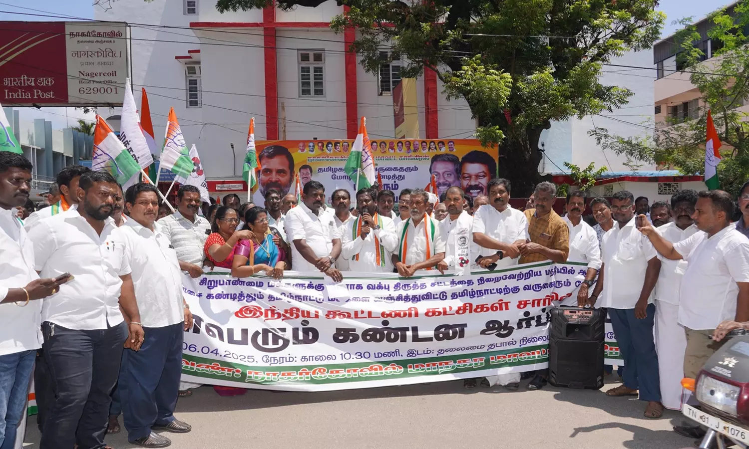 வக்ஃப் சட்டத்திருத்த மசோதா மூலம் இஸ்லாமிய சமூகத்தை வஞ்சித்த மத்திய அரசுக்கு எதிராக, நேற்று தமிழகம் வந்த நரேந்திர மோடிக்கு எதிர்ப்பு தெரிவிக்கும் வகையில் நாகர்கோவில் மாநகர மாவட்ட காங்கிரஸ் கட்சி தலைமையில் இந்திய கூட்டணி கட்சிகள் நேற்று நாகர்கோவிலில் நடத்திய ஆர்ப்பாட்டத்தில் கலந்து கொண்டு கண்டன உரையாற்றினேன்.