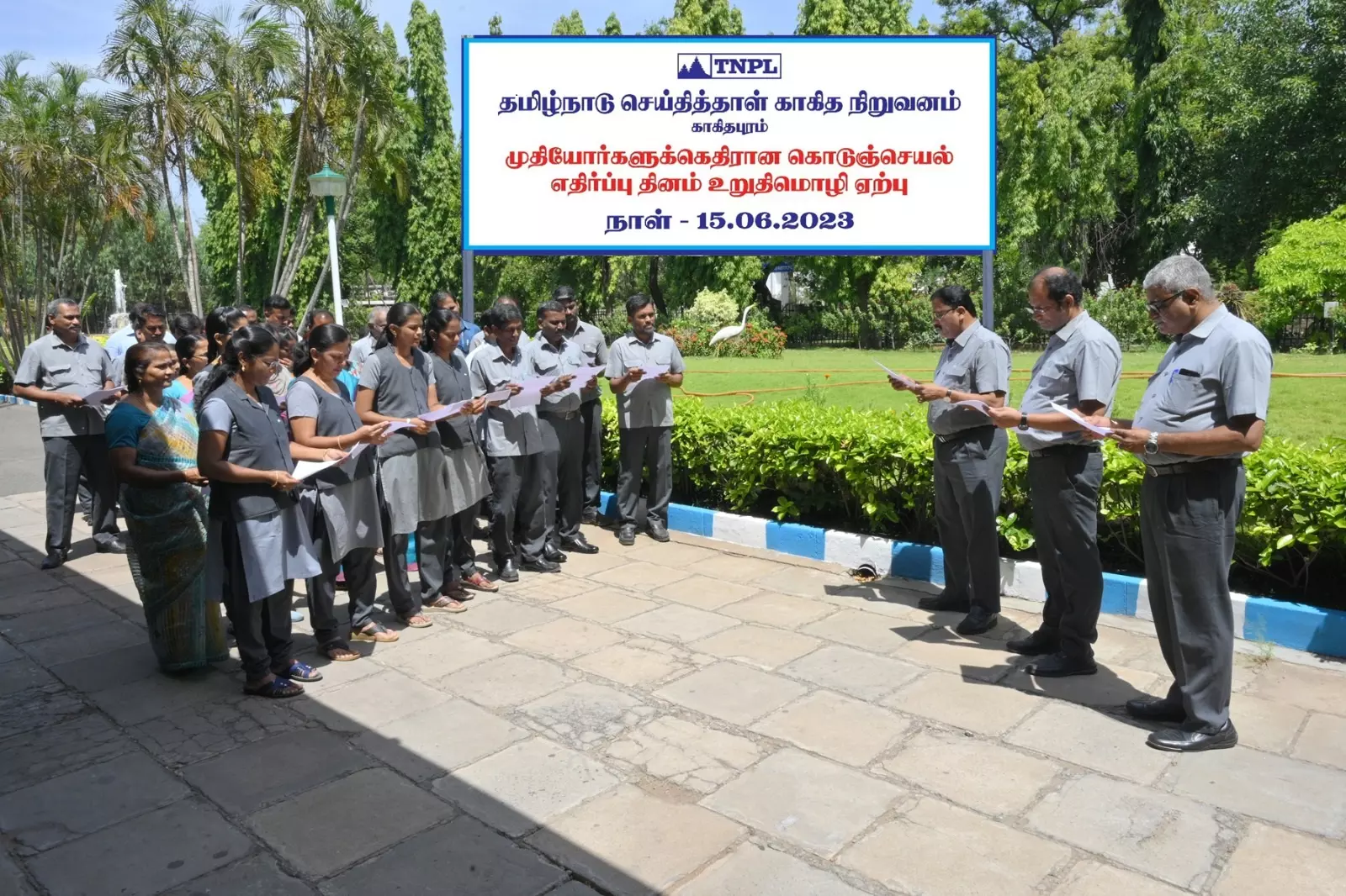 - தமிழ்நாடு செய்தித்தாள் காகித நிறுவனத்தில் உறுதிமொழி ஏற்பு நிகழ்ச்சி நடைபெற்றது
