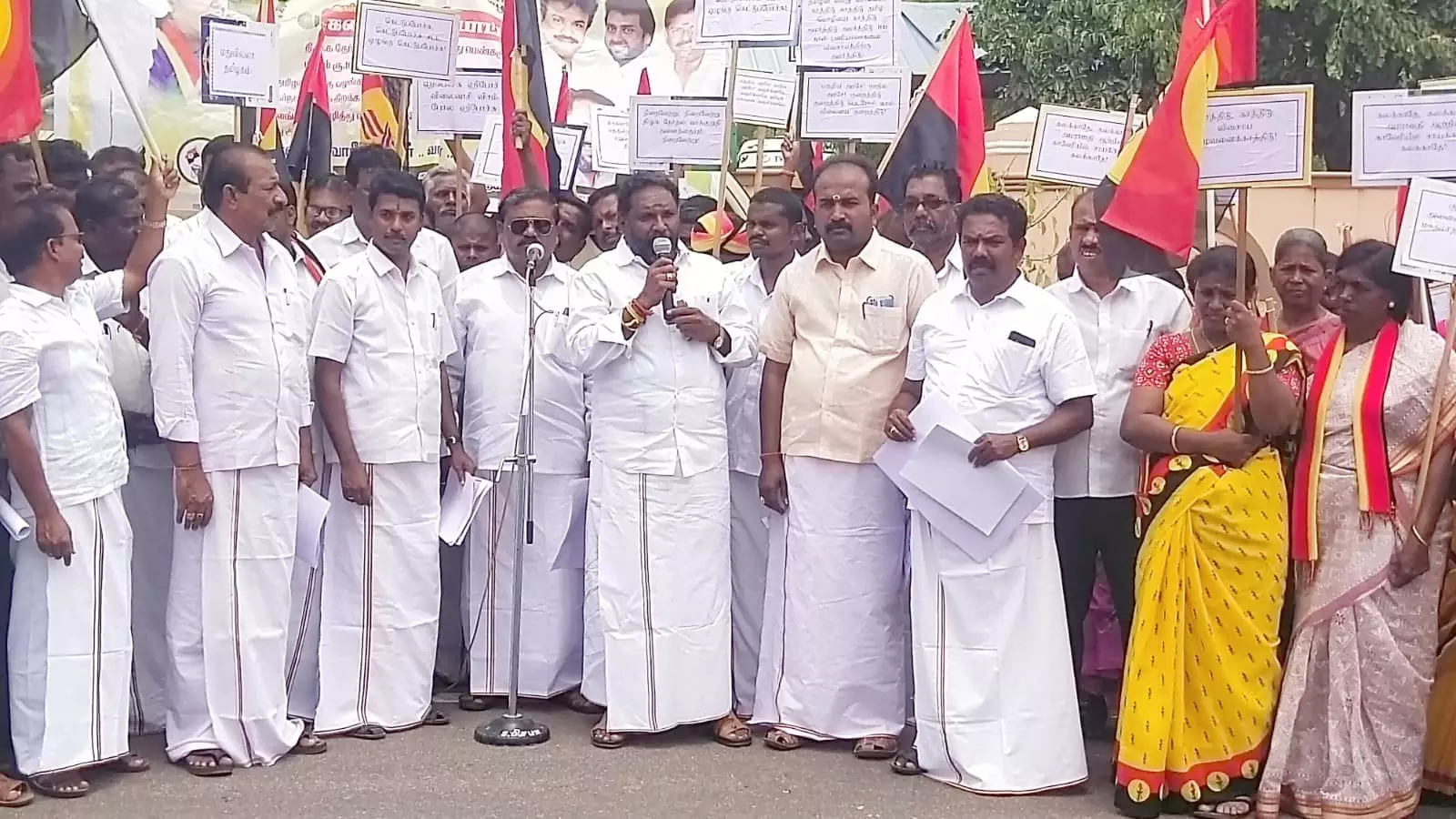 பல்வேறு கோரிக்கைகளை வலியுறுத்தி கரூரில் தே.மு.தி.க.வினர் ஆர்ப்பாட்டம்