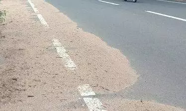 கரூர் - திருச்சி பைபாஸ் சாலையில், வெங்ககல்பட்டி மேம்பாலத்தில் இருந்து மாயனூர் வரை சீத்தப்பட்டி, உப்பிடமங்கலம், புலியூர், உள் வீரராக்கியம் ஆகிய பகுதி பிரிவுகள் அருகே மேம்பாலம் கட்டப்பட்டு பயன்பாட்டில் உள்ளன. இந்த மேம்பால பகுதிகளில் மணல் படிந்துள்ளன. அதிக காற்றின் காரணமாக தற்போது வழக்கத்தை விட அதிகளவு மணல் குவிந்துள்ளன. இதன் காரணமாக பின்னால் வரும் வாகனங்களுக்கு வழி விடும் இருசக்கர வாகன ஓட்டிகள், மணல் குவியலில் சறுக்கி விபத்தில் சிக்கும் அபாயம் உள்ளது. எனவே, சாலை ஓர மணல் குவியலை அகற்ற சம்பந்தப்பட்ட துறை அதிகாரிகள் நடவடிக்கை எடுக்க வேண்டும் என, வாகன ஓட்டிகள் எதிர்பார்க்கின்றனர்.