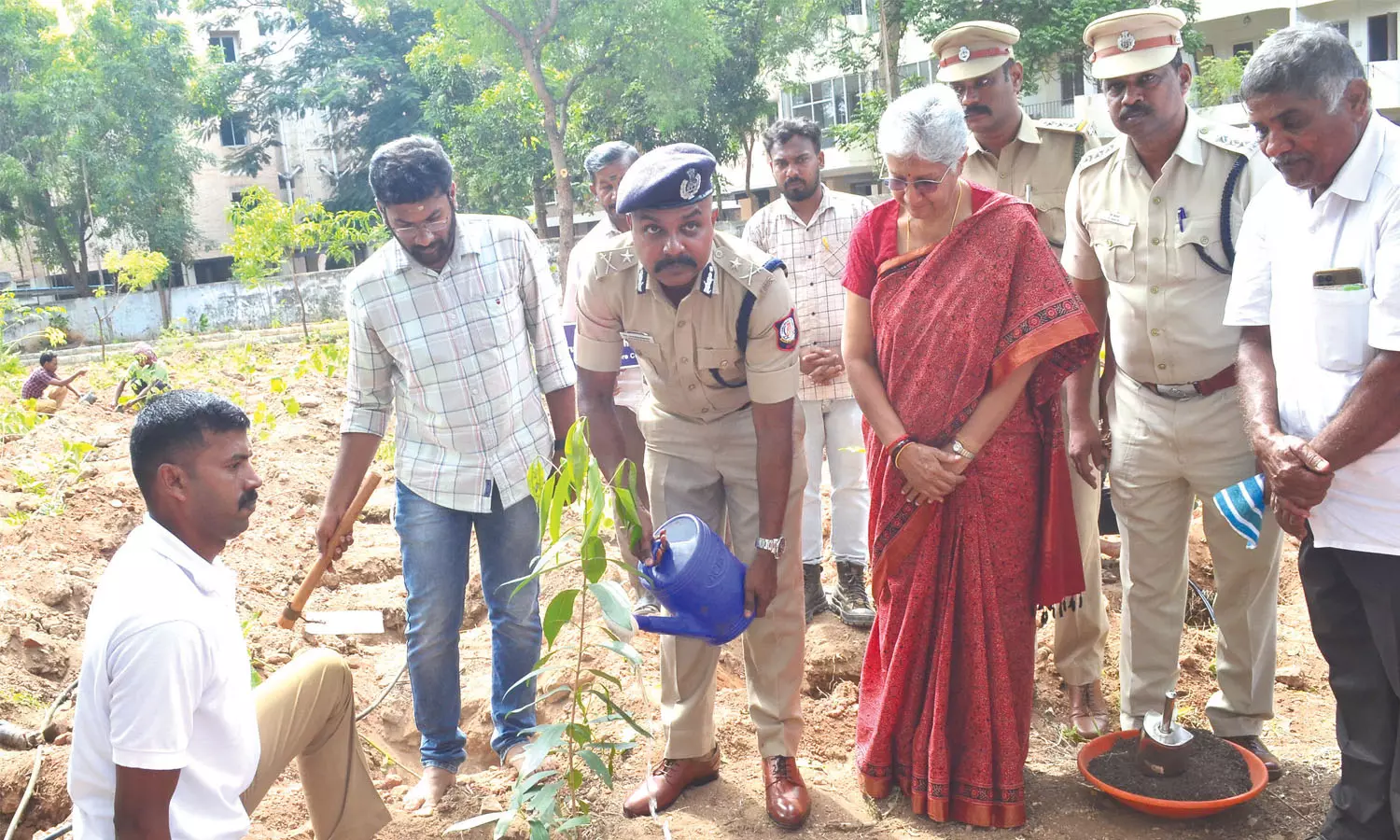 - போலீஸ் கமிஷனர் பாலகிருஷ்ணன் மரக்கன்று நட்டு நிகழ்ச்சியை தொடங்கி வைத்தார்