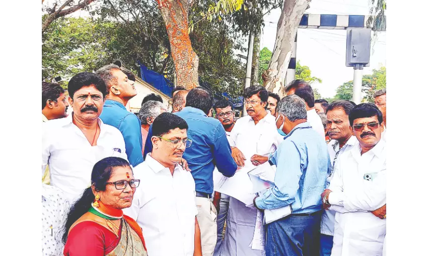 ரயில்வே மேம்பாலம் அமைக்கப்படவுள்ள இடத்தை செல்ல குமார் எம்.பி ஆய்வு