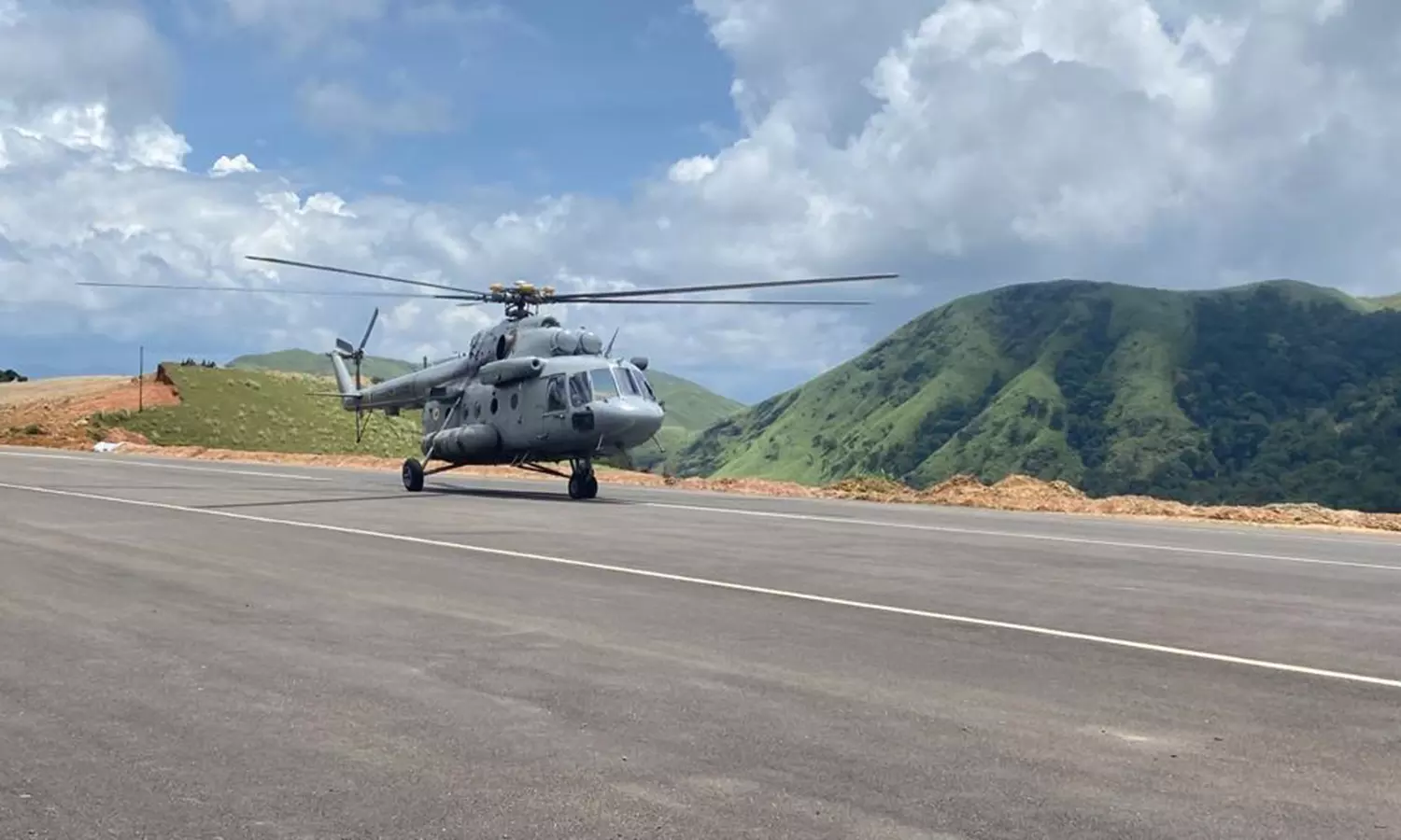 சத்திரம் விமான ஓடுதளத்தில் வெற்றிகரமாக தரை இறக்கப்பட்ட ராணுவ ஹெலிகாப்டர்.
