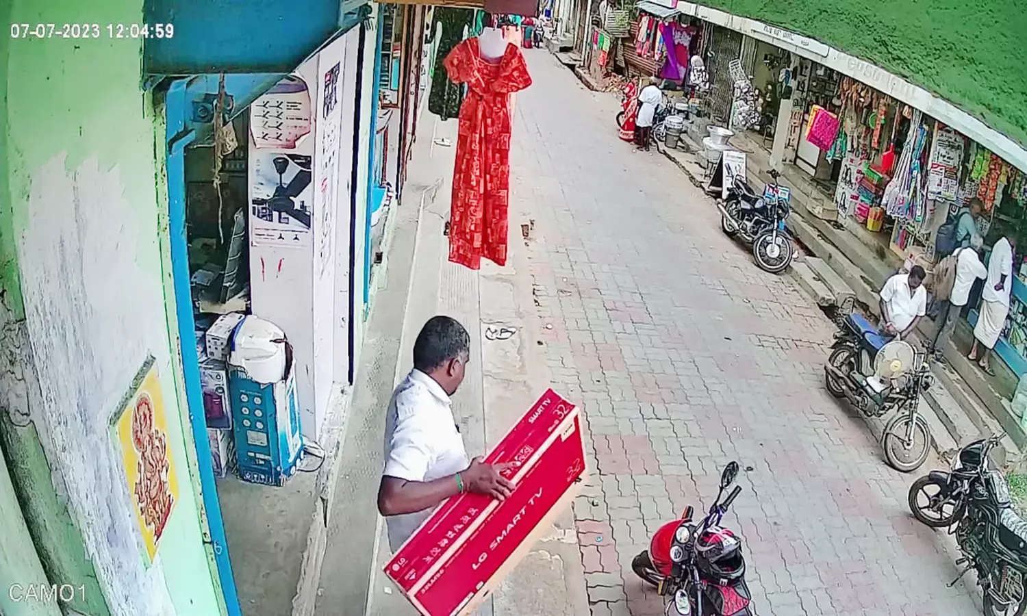 - கடைக்கு வந்த நபர் கடையின் முன்னால் இருந்த 20 ஆயிரம் மதிப்புள்ள புதிய எல்.இ.டி. டி.வி.யை திருடிச் சென்றார்.