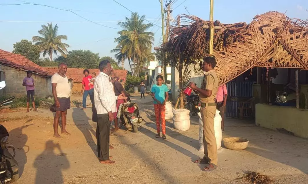சிறுத்தை நடமாட்டம் உள்ள பகுதியில் வனத்துறையினர் பொதுமக்களுக்கு ஒலிப்பெருக்கி மூலம் விழிப்புணர்வு ஏற்படுத்திய காட்சி.
