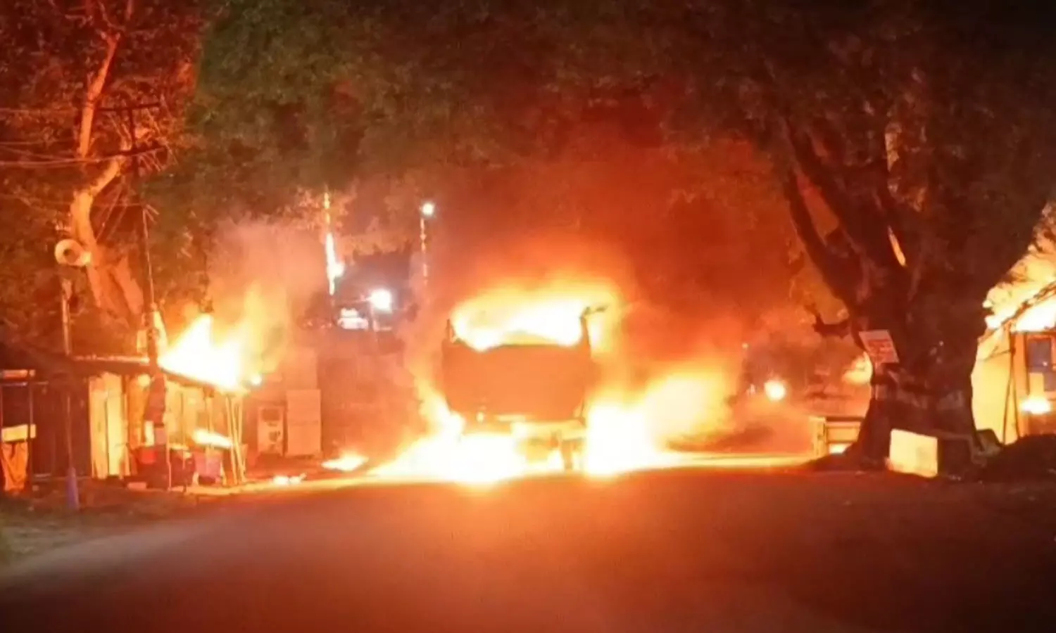 இதனைத்தொடர்ந்து சம்பவ இடத்திற்கு வந்த தீயணைப்பு துறையினர் 1 மணி நேரம் போராடி தீயை அணைத்தனர். இச்சம்பவத்தால் சுமார் 2 மணி நேரம் தேசிய நெடுஞ்சாலையில் போக்குவரத்து பாதிப்பு ஏற்பட்டது.