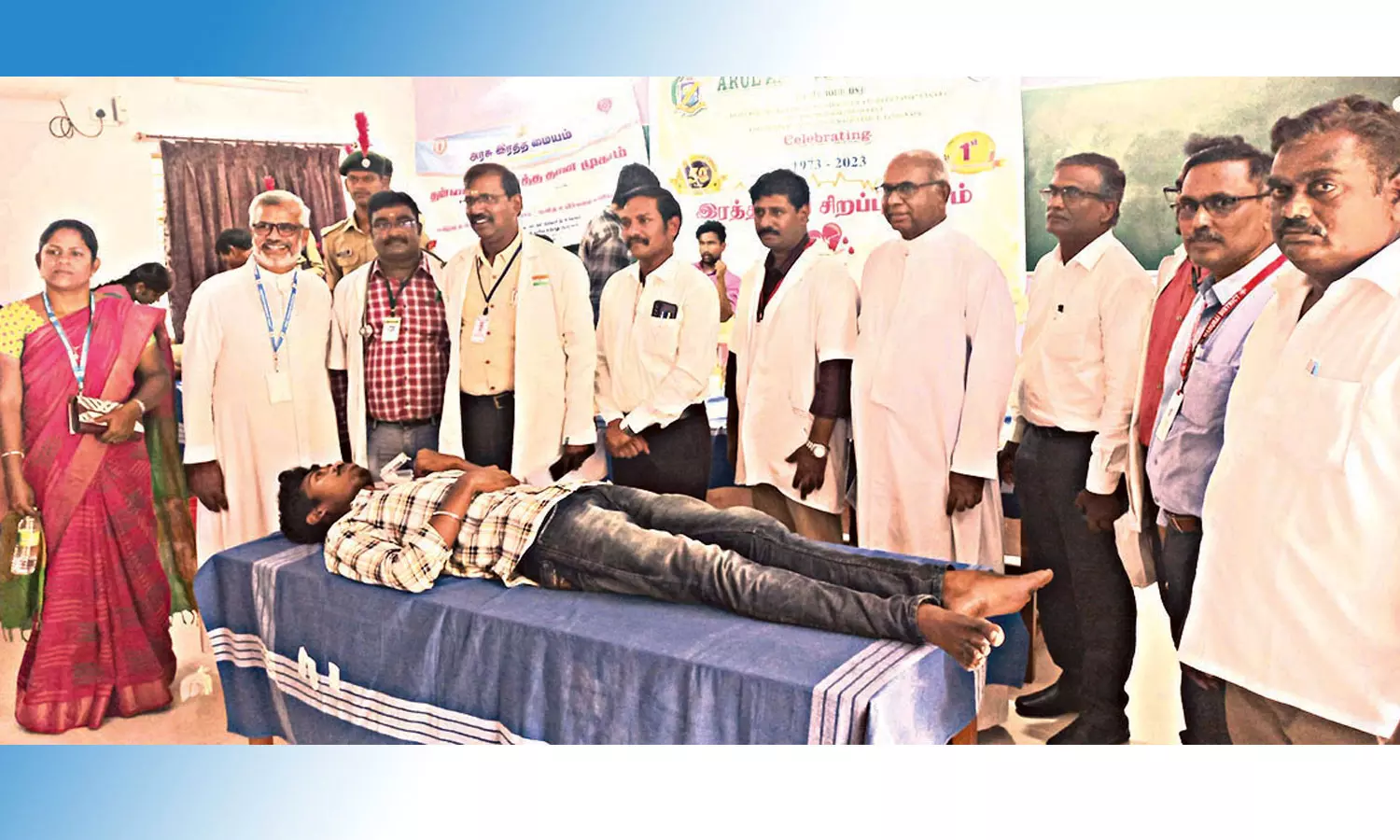 மதுரை மாவட்டம் கருமாத்தூர் அருள் ஆனந்தர் கல்லூரியின் ரத்ததான சேவை இயக்கத்தின் பொன் விழாவை (1973- 2023) முன்னிட்டு 50 ஆண்டு கால ரத்ததான சேவையை நினைவுகூறும் வகையில், மெகா ரத்ததானம் மற்றும் உடல் உறுப்பு தான முகாம் கல்லூரியில் நடைபெற்றது.