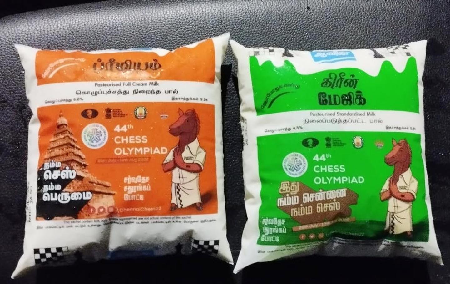 செஸ் ஒலிம்பியாட் போட்டியை நினைவுபடுத்தும் வகையில் மதுரை மாவட்ட ஆவின் பால் பாக்கெட்டுகளில் ''செஸ் தம்பி'' உருவம் பொறிக்கப்பட்டு உள்ளது. இது வாடிக்கையர்களுக்கு மகிழ்ச்சியை ஏற்படுத்தி உள்ளது.