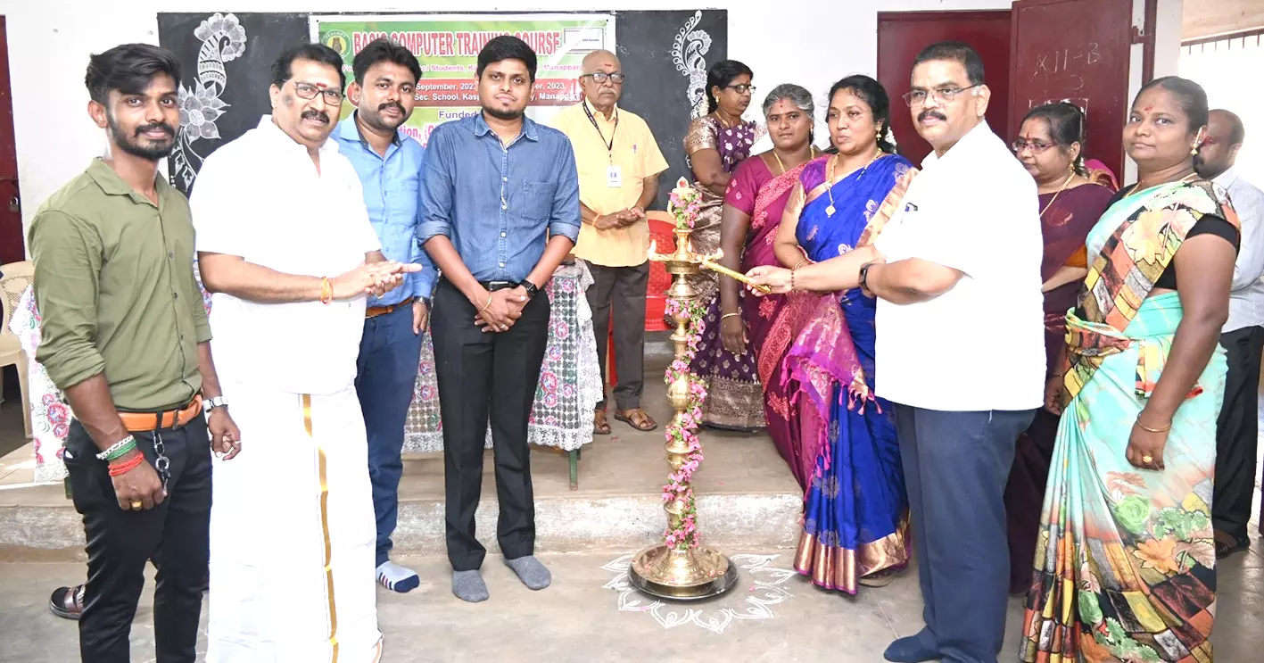 ஜி.எச்.சி.எல். அலுவலர் சுஜின் முன்னிலை வகித்தார். தலைமை நிர்வாக அலுவலர் பாலகிருஷ்ணன் குத்து விளக்கேற்றி தொடங்கி வைத்து பேசுகை யில், டெக்ஸ் டைல்ஸ் வர்த்த கத்தில் லாபத்தில் ஒரு பகுதியை கல்வி வளர்ச்சிக்காக ஒதுக்கி பள்ளி மாணவர்களுக்கு கணினி பயிற்சி வகுப்பை நடத்தி வருகிறோம். ஆர்வமுள்ளவர்கள் படித்து பயன்பெற வேண்டும் என்பது மட்டுமே எங்களது நோக்கமாகும்.