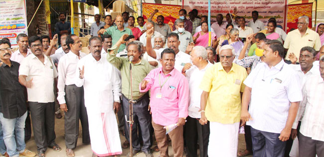 - பல்வேறு கோரிக்கைகள் வலியுறுத்தி கோஷங்கள் எழுப்பப்பட்டன.