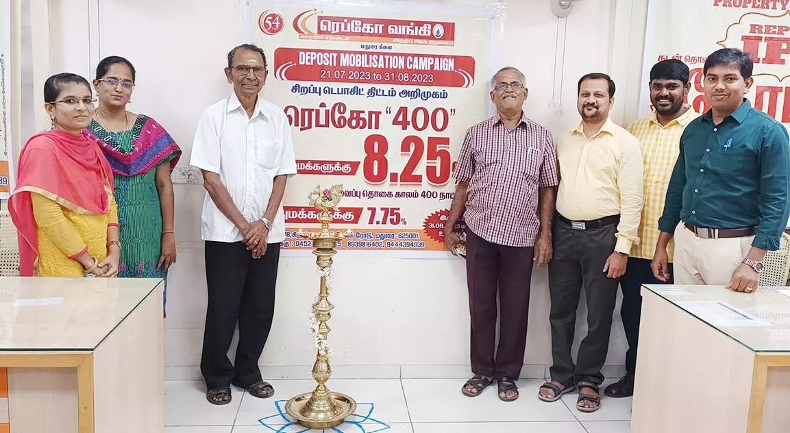 ரெப்கோ வங்கியில் சிறப்பு டெபாசிட் திட்ட வாடிக்கையாளர் முகாம் இன்று தொடங்கியது. ரெப்கோ வங்கியின் மதுரை கிளையில் இணை பொது மேலாளர் சண்முகம் முன்னிலையில் வாடிக்கை யாளர்கள் மரிய சூசை, பாஸ்கரன் மற்றும் வங்கி எழுத்தர் ராஜேஸ்வரி ஆகியோர் குத்துவிளக்கு ஏற்றி டெபாசிட் திட்டத்தை தொடங்கி வைத்தனர்.