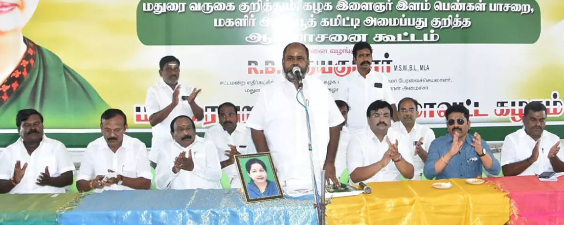 - ஆர்.பி.உதயகுமார் தலைமையில் அ.தி.மு.க.வினர் தீர்மானங்களை நிறைவேற்றினார்.