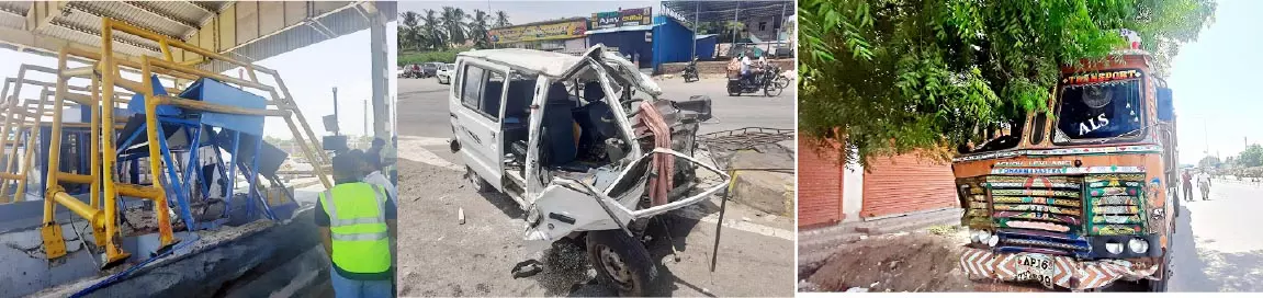 - மற்றொரு விபத்தில் டோல்கேட் ஊழியர் நசுங்கி பலியானார்.