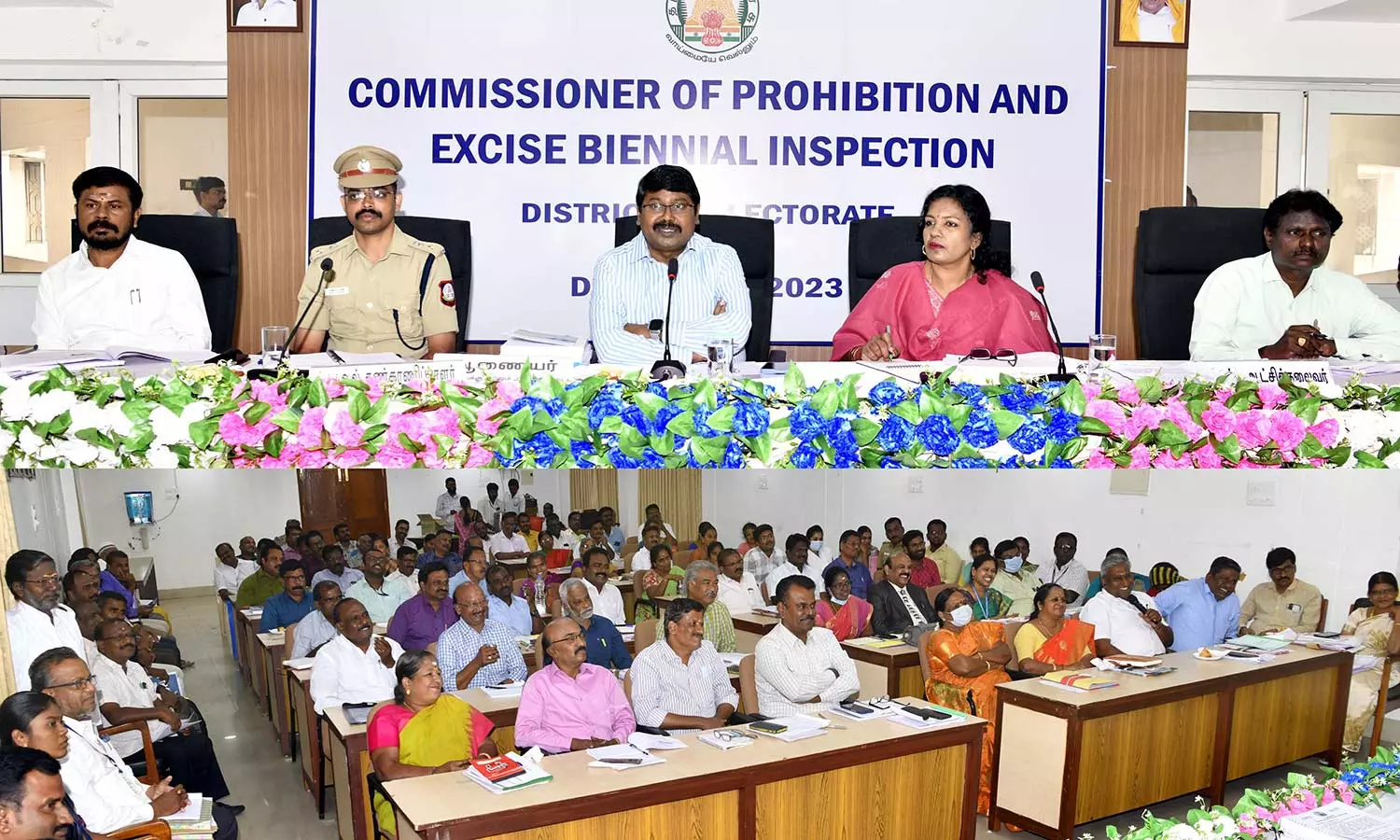 ஈராண்டு தணிக்கை குறித்த ஆய்வுக்கூட்டம் மதுவிலக்கு மற்றும் ஆயத்தீர்வைத்துறை ஆணையர் மதிவாணன் தலைமையில் நடைபெற்றது. இதில் மாவட்ட கலெக்டர் ஷஜீவனா உள்பட பலர் கலந்து கொண்டனர்.