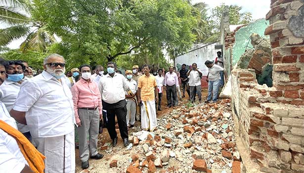 இந்நிலையில் கூட்டுறவுத்துறை அமைச்சர் இ.பெரியசாமி சமத்துவபுரத்திற்கு சென்று வீடுகள் சீரமைக்கும் பணிகளை பார்வையிட்டு ஆலோசனைகளை வழங்கினார்.
