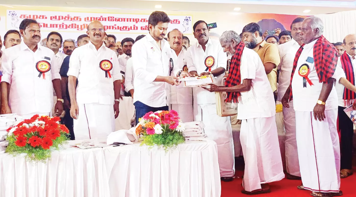 தி.மு.க. மூத்த முன்னோடிகள் 1588 பேருக்கு பொற்கிழி: அமைச்சர் உதயநிதி ஸ்டாலின் வழங்கினார்