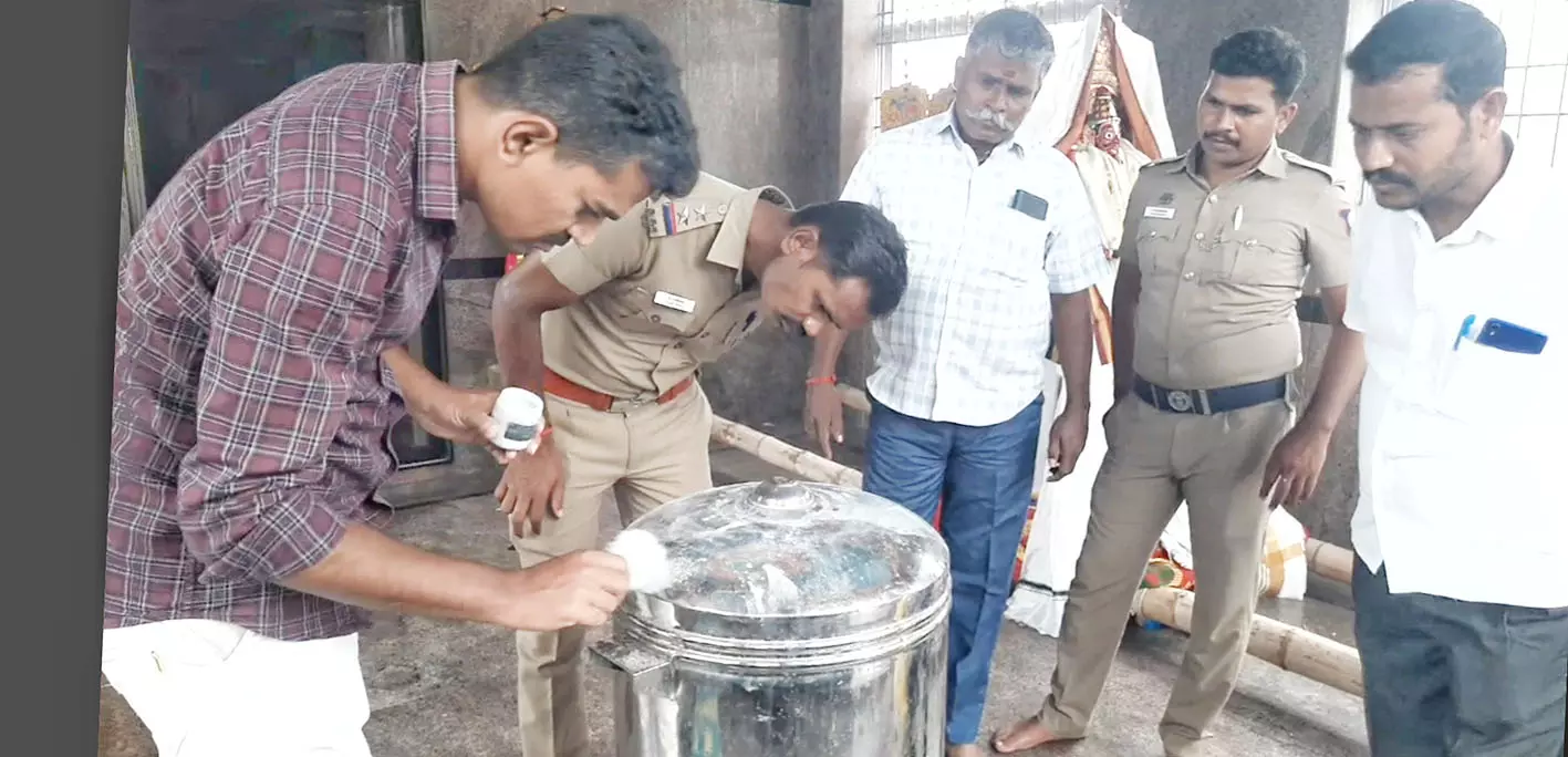 - மேலும் அம்மன் கழுத்தில் போடப்பட்டிருந்த ஒரு பவுன் தங்க நகை மற்றும் உண்டியல் உடைக்கப்பட்டு அதிலிருந்து சுமார் ரூ.30,000 திருடப்பட்டன.