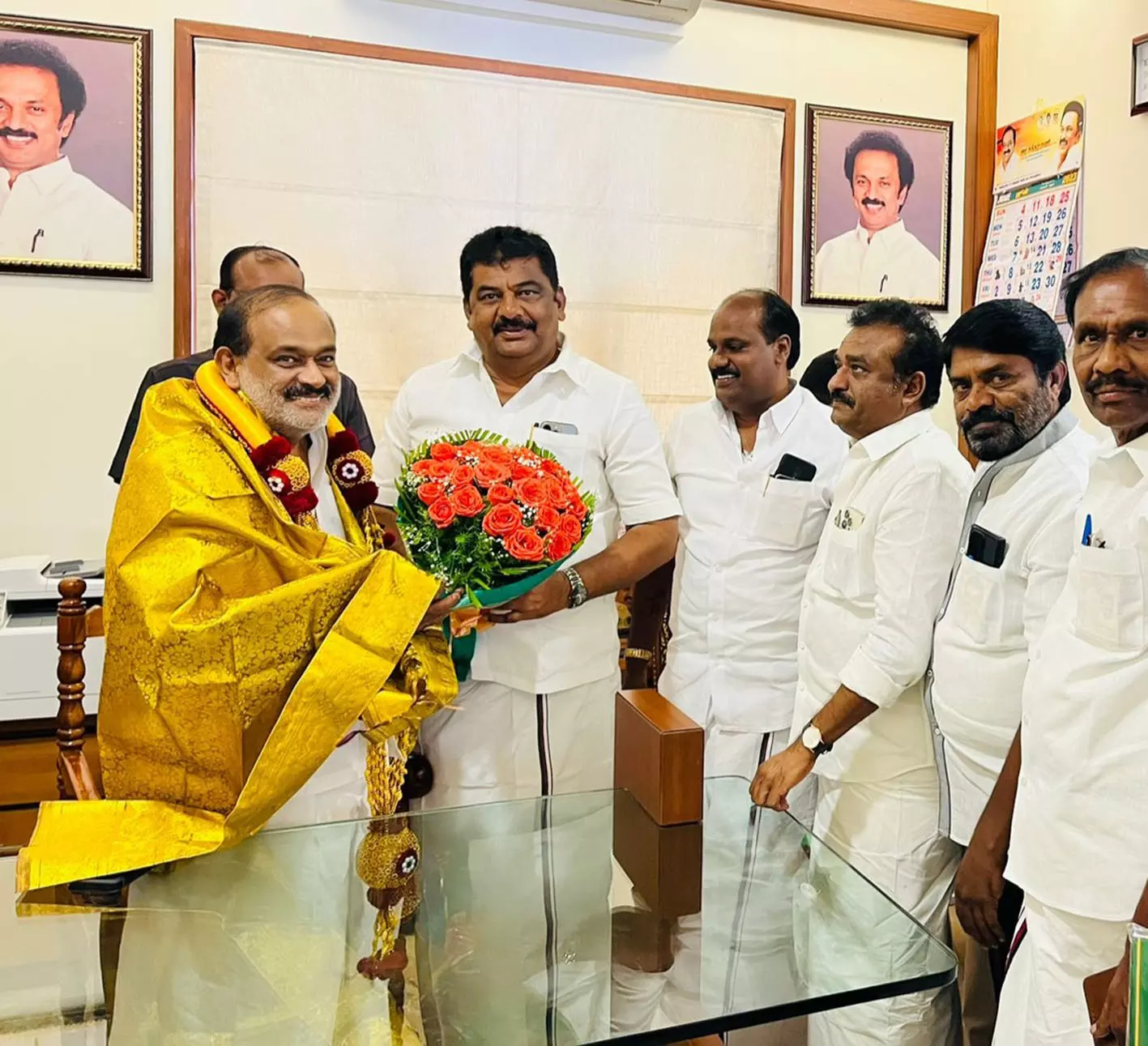 - ஒய்.பிரகாஷ் நேரில் சந்தித்து, சால்வை அணிவித்து வாழ்த்து தெரிவித்தார்.
