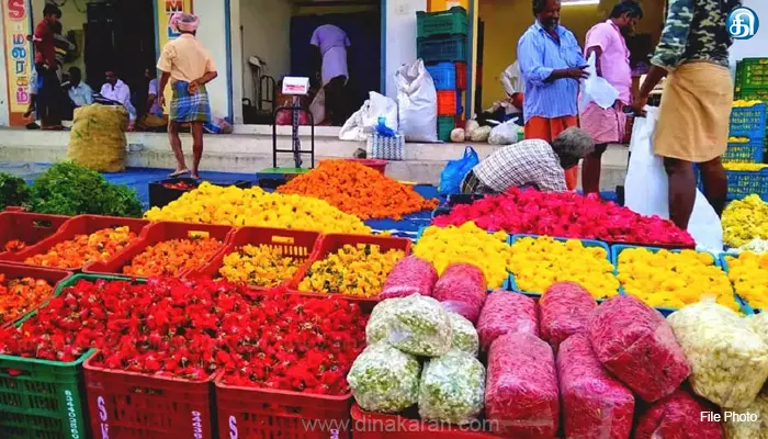 கடந்த வாரம் குண்டு மல்லிகை கிலோ ரூ.600-க்கும், சம்பங்கி கிலோ ரூ.100-க்கும், அரளி கிலோ ரூ.150- க்கும், ரோஜா கிலோ ரூ.250- முல்லைப் பூ கிலோ ரூ.600-க்கும், செவ்வந்திப்பூ ரூ.280- க்கும், கனகாம்பரம் ரூ.700-க்கும் வாங்கிச் சென்றனர்.நேற்று குண்டுமல்லிகை ரூ.300-க்கும்,சம்பங்கி கிலோ ரூ.80-க்கும், அரளி கிலோ ரூ.80- க்கும், ரோஜா கிலோ ரூ.160- க்கும், முல்லைப் பூ ரூ.300-க்கும், செவ்வந்திப்பூ ரூ.200-க்கும், கனகாம்பரம் ரூ.350-க்கும் வாங்கிச் சென்றனர்.புரட்டாசி மாதம் தொடங்கி விட்டதால் திருமணம் மற்றும் கோவில் விசேஷங்கள் இல்லாததால் பூக்கள் விலை சரிவடைந்துள்ளது.