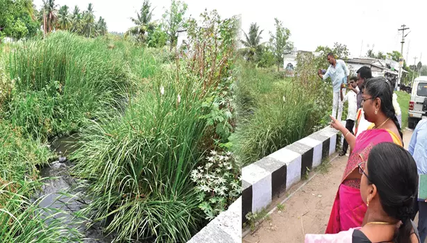 வீசாணம் நீர்வரத்து கால்வாயினை மாவட்ட கலெக்டர் உமா ஆய்வு செய்த போது எடுத்த படம்.