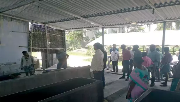 சாயப்பட்டறையில் அதிகாரிகள் ஆய்வு செய்த காட்சி.