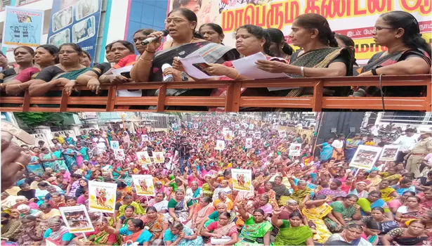 - ஆர்ப்பாட்டதிற்கு மாநில மகளிர் தொண்டர் அணி செயலாளர் ராணி தலைமை வகித்தார்.