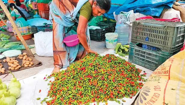 இதற்கிடையே தக்காளி விலைக்கிணையாக பச்சை மிளகாய் விலையும் உயர்ந்து 100 ரூபாய்க்கு விற்பனை யாகிறது. தக்காளியை தொடர்ந்து மற்ற காய்கறி களின் விலையும் உயர்ந் துள்ளதால் மக்கள் அதிர்ச்சி அடைந்துள்ளனர்.