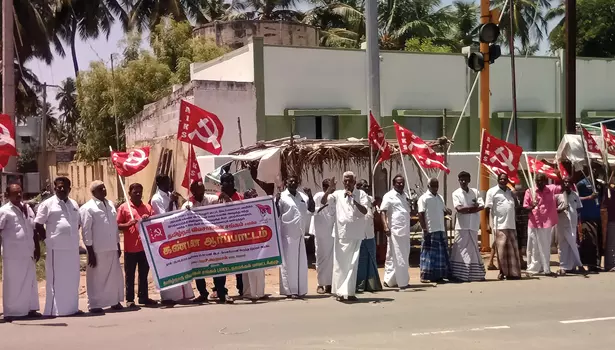 சோழசிராமணியில் போலீசாரை கண்டித்து கம்யூனிஸ்டு கட்சியினர் ஆர்ப்பாட்டம்