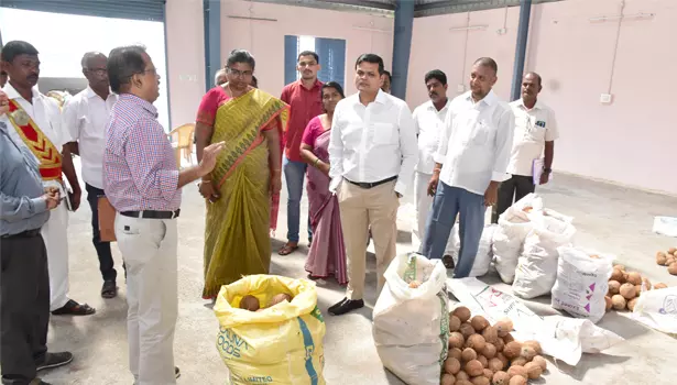 பரமத்தி வேலூர் ஒழுங்கு முறை விற்பனைக்கூடத்தில் 25 மெட்ரிக் டன் கொள்ளளவு கொண்ட குளிர்பதன சேமிப்பு கிடங்கி, ஊரக கிடங்கி ஆகியவற்றை பார்வையிட்டு ஆய்வு செய்தார்.