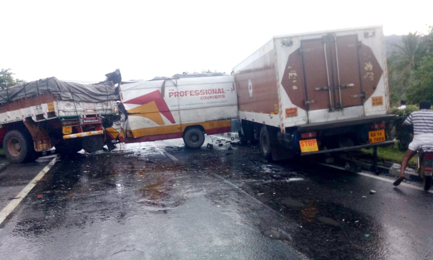 விபத்தில் சிக்கிய வாகனங்களை படத்தில் காணலாம்.
