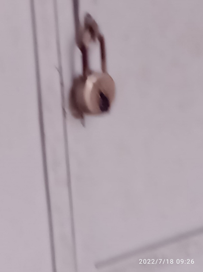 பூட்டில் தார் ஊற்றப்பட்டுள்ள காட்சி.