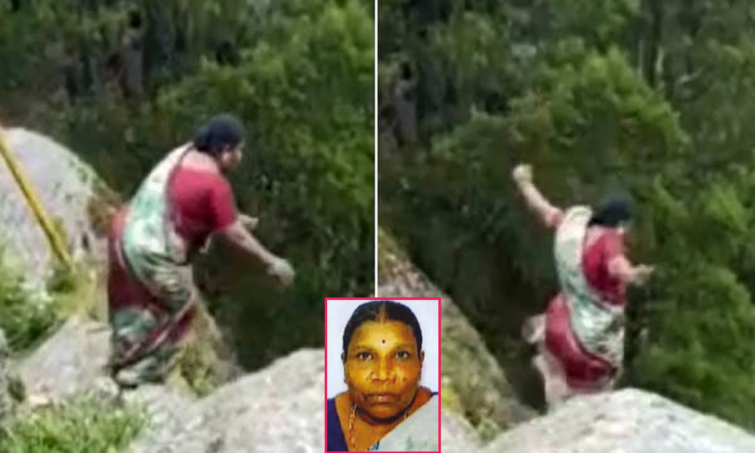 தொட்டபெட்டா மலைச்சிகரத்தில் இருந்து லீலாவதி பள்ளத்தில் குதித்த காட்சி. (உள்படம் - லீலாவதி)