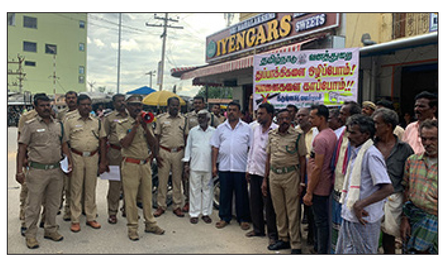 உரிமம் இல்லாத நாட்டு துப்பாக்கிகள் வைத்திருப்பவர்கள் கண்டுபிடிக்கப்பட்டால் சம்பந்தப்பட்டவர்கள் மீது குற்ற வழக்குகள் பதிவு செய்யப்படும். மேலும் கடுமையான நவடிக்கைகள் எடுக்கப்படும் எனவும் ஒலிபெருக்கி மூலம் பொது மக்களுக்கு விழிப்புணர்வு செய்தனர்.