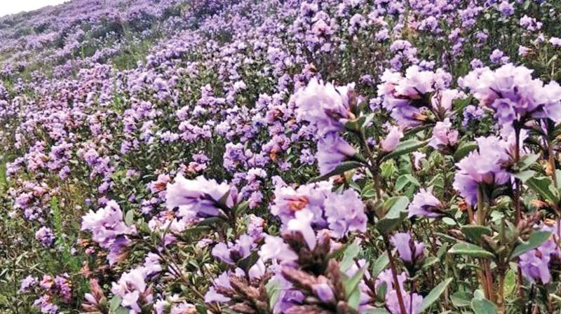 தொட்டபெட்டா மலைச்சரிவுகளில் பூத்துக் குலுங்கு குறிஞ்சி மலா்கள்