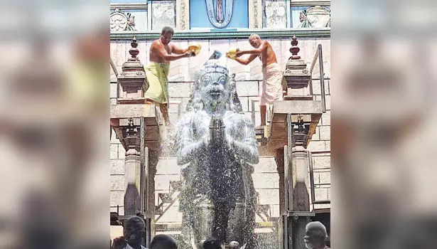 சித்திரை முதல் ஞாயிற்றுக்கிழமையையொட்டிநாமக்கல் ஆஞ்சநேயருக்கு 1008 லிட்டர் பால் அபிஷேகம்