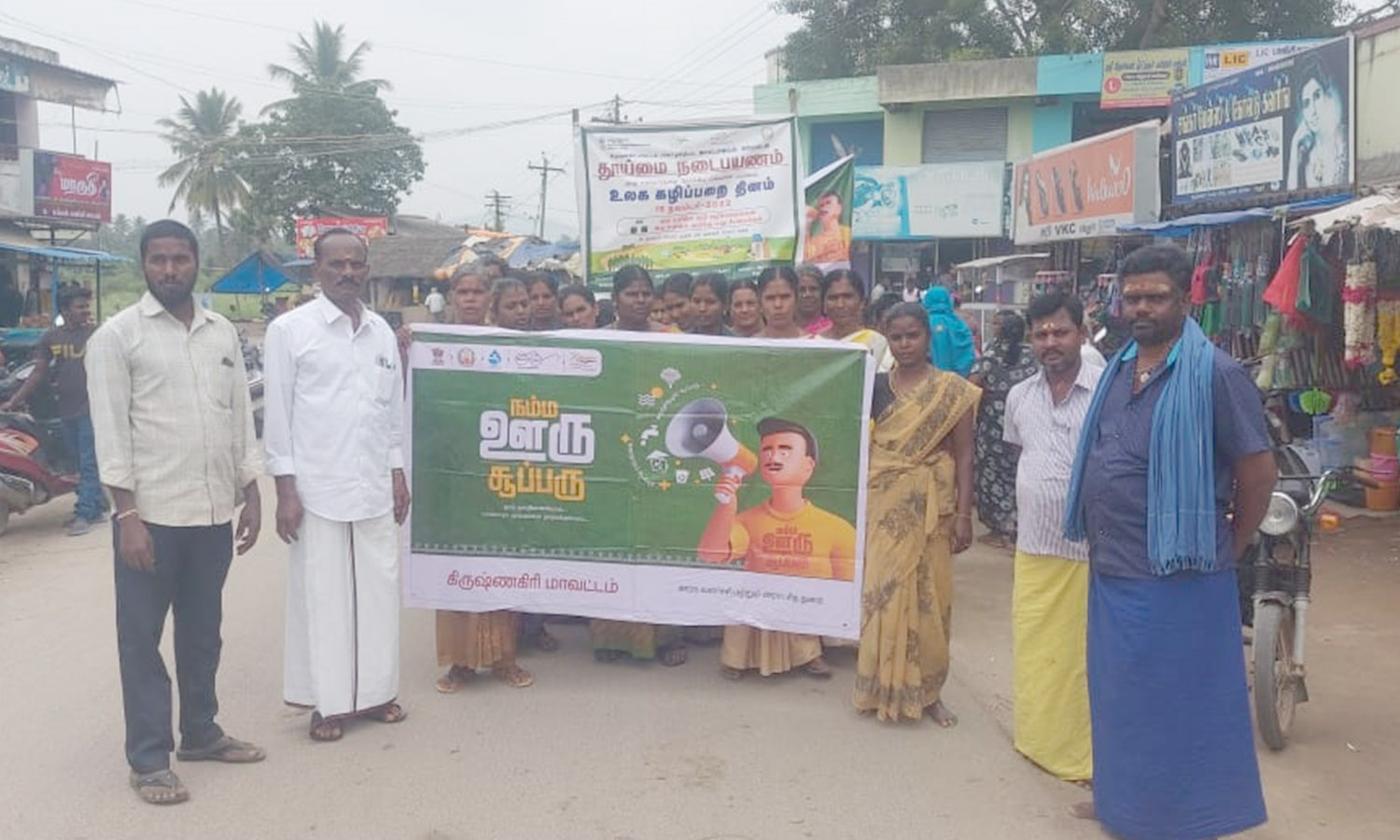 கிருஷ்ணகிரி மாவட்டம் பர்கூர் ஒன்றியம் காட்டாகரம் ஊராட்சியில் உலக கழிப்பறை தினத்தை முன்னிட்டு முழு சுகாதாரத்தை நோக்கி மக்களின் பயணம் என்ற பெயரில் தூய்மை நடை பயணம் ஊராட்சி மன்ற தலைவர் ரங்கநாதன் தலைமையில் நடைபெற்றது.