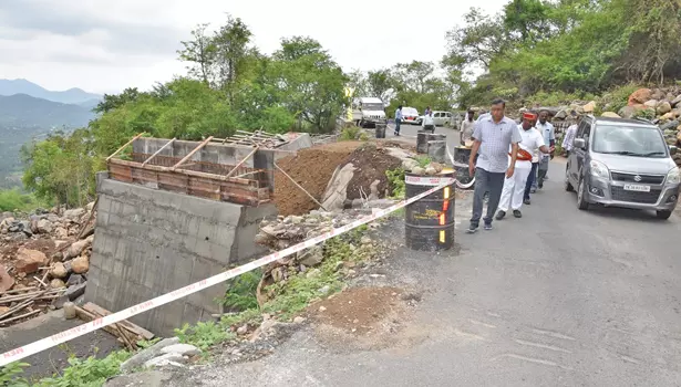 பின்னர், சேலம், ஏற்காடு மலைப்பாதையில் 2 மற்றும் 3-வது கொண்டை ஊசி வளைவிற்கிடையே நெடுஞ்சாலைத்துறையின் மூலம் தடுப்புச் சுவர் கட்டும் பணிகள் நடைபெற்றுவருவதை ஆய்வு செய்து பணிகளை விரைந்து முடித்திட அறிவுறுத்தினார்.
