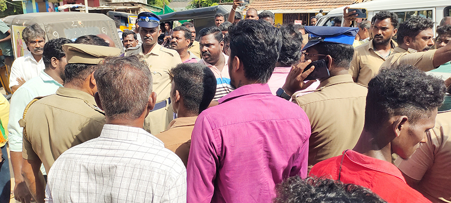 கடலூர் கோண்டூர் பகுதியில் பாரதீய ஜனதா கட்சியினர் கொடி கம்பம் வைக்க விடுதலை சிறுத்தைகள் கட்சியினர் கடும் எதிர்ப்பு தெரிவித்து வாக்குவாதத்தில் ஈடுபட்ட காட்சி.