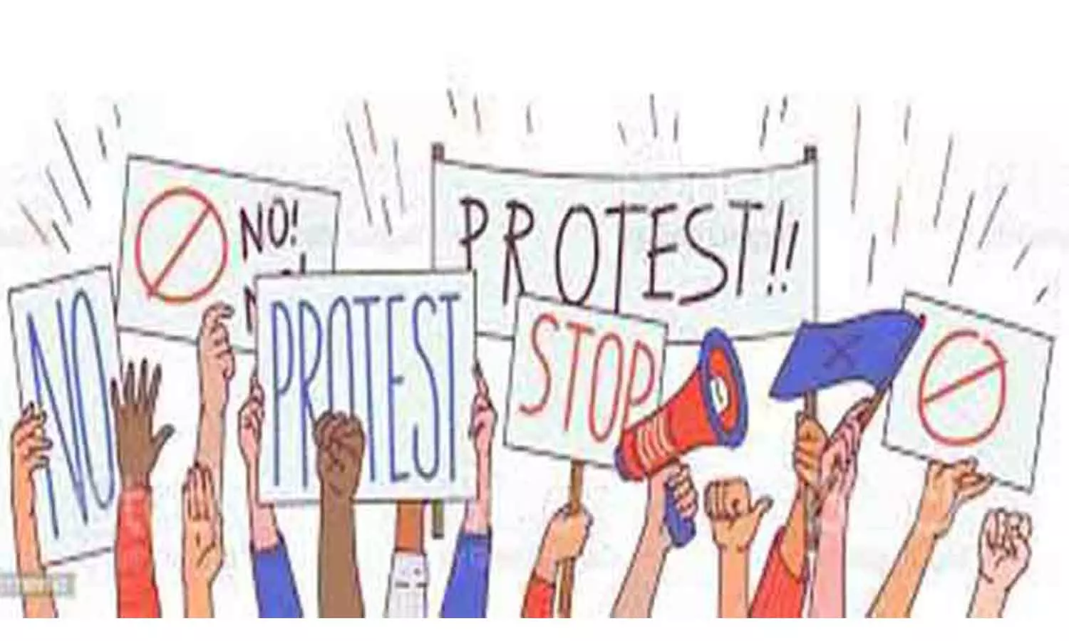 - தாலுகா அலுவலக வளாகத்தில் தரையில் அமர்ந்து கோஷங்கள் எழுப்பினர்.