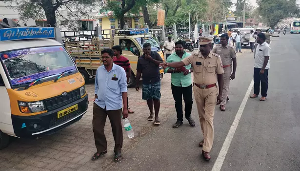 பின்னர் ஆட்டோ ஓட்டுநர்களிடம் இந்த இடம் பாதசாரிகள் நடந்து செல்ல அமைக்கப்பட்ட இடம், இங்கு வாகனங்களை நிறுத்த கூடாது என்று கூறி நடைபாதையில் நிறுத்தி இருந்த ஆட்டோக்களை அப்புறபடுத்தினர்.