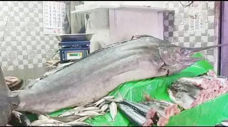 இந்த மீனை கடை முன் பொதுமக்கள் பாா்வைக்காக விற்பனையாளா்கள் வைத்திருந்தனா். இதை ஏராளமானவா்கள் பாா்த்துச் சென்றனா். சிலா் ஆச்சரியத்துடன் செல்போனில் புகைப்படம் எடுத்துச் சென்றனா்.