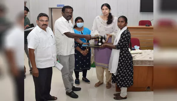 மக்கள் குறைதீர்க்கும் நாள் கூட்டத்தில் பிற்ப டுத்தப்பட்டோர் மற்றும் சிறுபான்மையினர் நலத்துறையின் சார்பில் ஒரு பயனாளிக்கு ரூ.5,357 மதிப்பிலான தையல் எந்திரத்தினை மாவட்ட வருவாய் அலுவலர் மேனகா வழங்கினார். இதில், தனித்துணை ஆட்சியர் (சமூக பாதுகாப்புத் திட்டம்) மயில், மாவட்ட பிற்படுத்தப்பட்டோர் மற்றும் சிறுபான்மையினர் நல அலுவலர் முருகன் உள்ளிட்ட அனைத்துத்துறை அரசு அலுவலர்கள் கலந்துகொண்டனர்.
