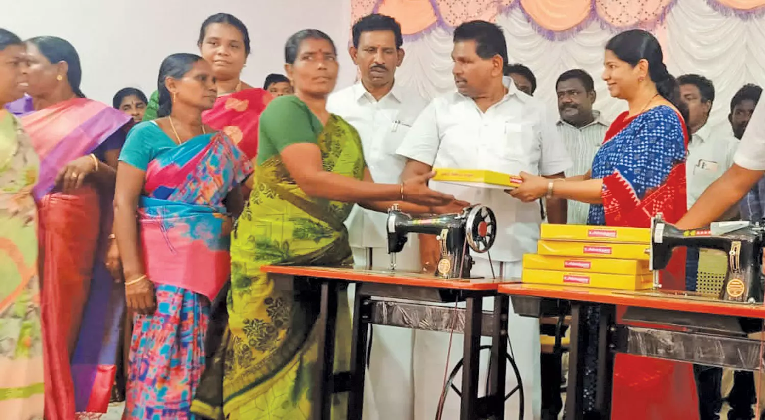 கனிமொழி எம்.பி. நலத்திட்ட உதவிகள் வழங்கினார். அருகில் அமைச்சர் அனிதா ராதாகிருஷ்ணன் மற்றும் பலர் உள்ளனர்.