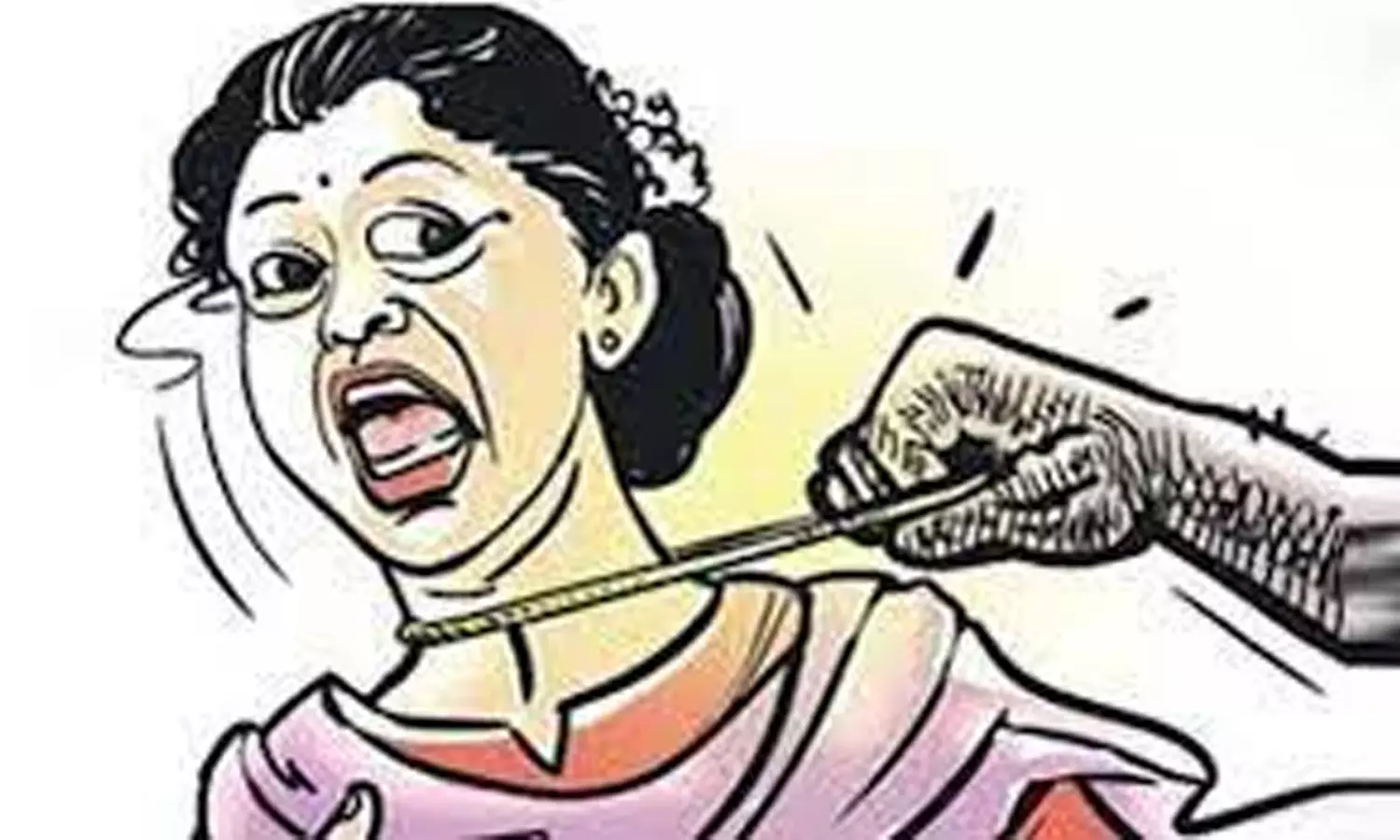பெரம்பலூர் மாவட்டம் தேவையூர் கிராமத்தை சேர்ந்தவர் ராகவி (வயது 20). இவர் மங்களமேடு அடுத்துள்ள ரஞ்சன்குடி தபால் அலுவலகத்தில் ஊழியராக பணிபுரிந்து வருகிறார். நேற்று வழக்கம்போல் பணி முடிந்து ராகவி தனது வீட்டிற்கு சைக்கிளில் சென்று கொண்டு இருந்தார். அப்போது மோட்டார் சைக்கிளில் வந்த மர்ம ஆசாமி ராகவி கழுத்தில் அணிந்திருந்த 2 பவுன் சங்கிலியை பறித்துகொண்டு தப்பி சென்றான். இந்த சம்பவம் குறித்து ராகவி அளித்த புகாரின் பேரில் மங்களமேடு போலீசார் வழக்குப்பதிவு செய்து விசாரணை நடத்தி வருகின்றனர்.