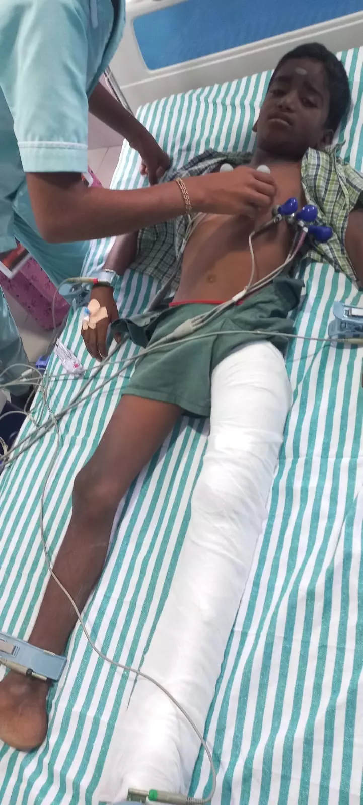 பள்ளி இரும்பு கேட்டு விழுந்து மாணவனின் கால் எலும்பு முறிவு
