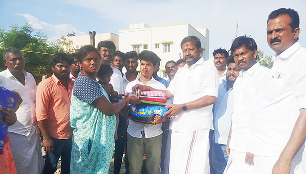 சம்பவஇடத்திற்கு சென்று தீ விபத்தால் பாதிக்கப்பட்ட பகுதிகளை பார்வையிட்டு பாதிக்கப்பட்டோருக்கு ஆறுதல் கூறி, நிவாரண உதவிகளாக தலா ரூ. 10 ஆயிரம் பணம் மற்றும் வேட்டி ,சேலை, அரிசி உள்ளிட்ட நிவாரணப் பொருட்களை வழங்கினார்.
