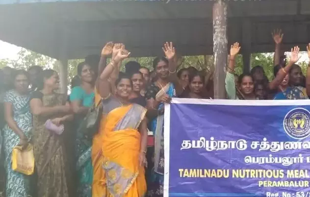 சத்துணவு ஊழியர் சங்கத்தினர் ஆர்ப்பாட்டம்