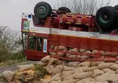 - மக்காச்சோளம் ஏற்றி வந்த லாரி கவிழ்ந்து மூட்டைகள் சிதறின